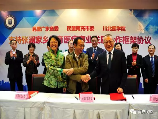 2017年10月18日至19日,民盟广东省委专职副主委、广东省政协常委程昆一行15人来南充开展“不忘合作初心,继续携手前进”专题教育活动,并于19日在川北医学院会议室与民盟南充市委、川北医学院签订有关支持张澜家乡医疗事业发展活动三方合作框架协议书, 把落脚点选在立足长远、锐意进取的川北医学院,并写入了民盟广东省委五年工作规划。