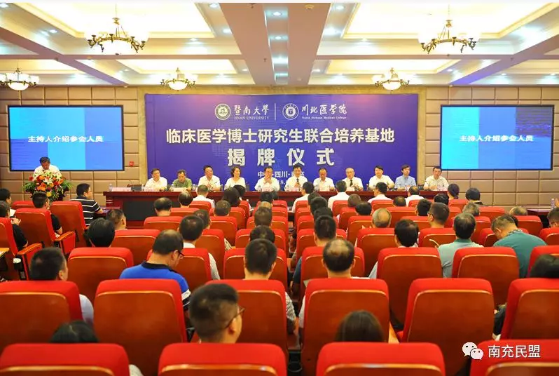 2018年7月29日,暨南大学与川北医学院共建临床医学博士研究生联合培养基地揭牌和签约仪式在川北医学院成功举行。暨南大学、民盟广东省委、民盟南充市委代表、川北医学院主要负责人等参加了揭牌仪式。目前,博士研究生联合培养基地建设取得实质进展,暨南大学聘请川北医学院9名教师为兼职博导,并计划为川北医学院培养150名博士,首批33名博士已经入校就读……