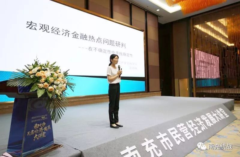 赵静梅教授就当前的宏观经济、经济政策、金融热点问题进行剖析,为参会民营企业家指明发展方向。