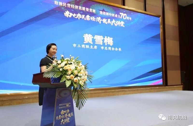 南充市工商联主席、市总商会会长黄雪梅发表讲话
