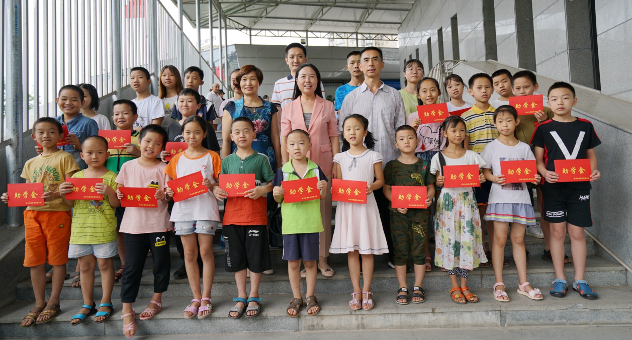 市工委班子成员与受助学生合影