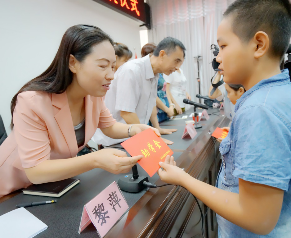 现场向受助学生发放助学金