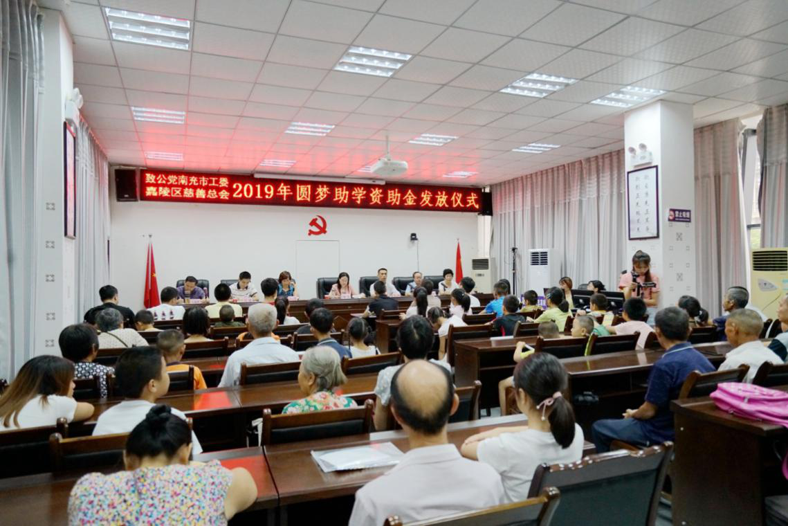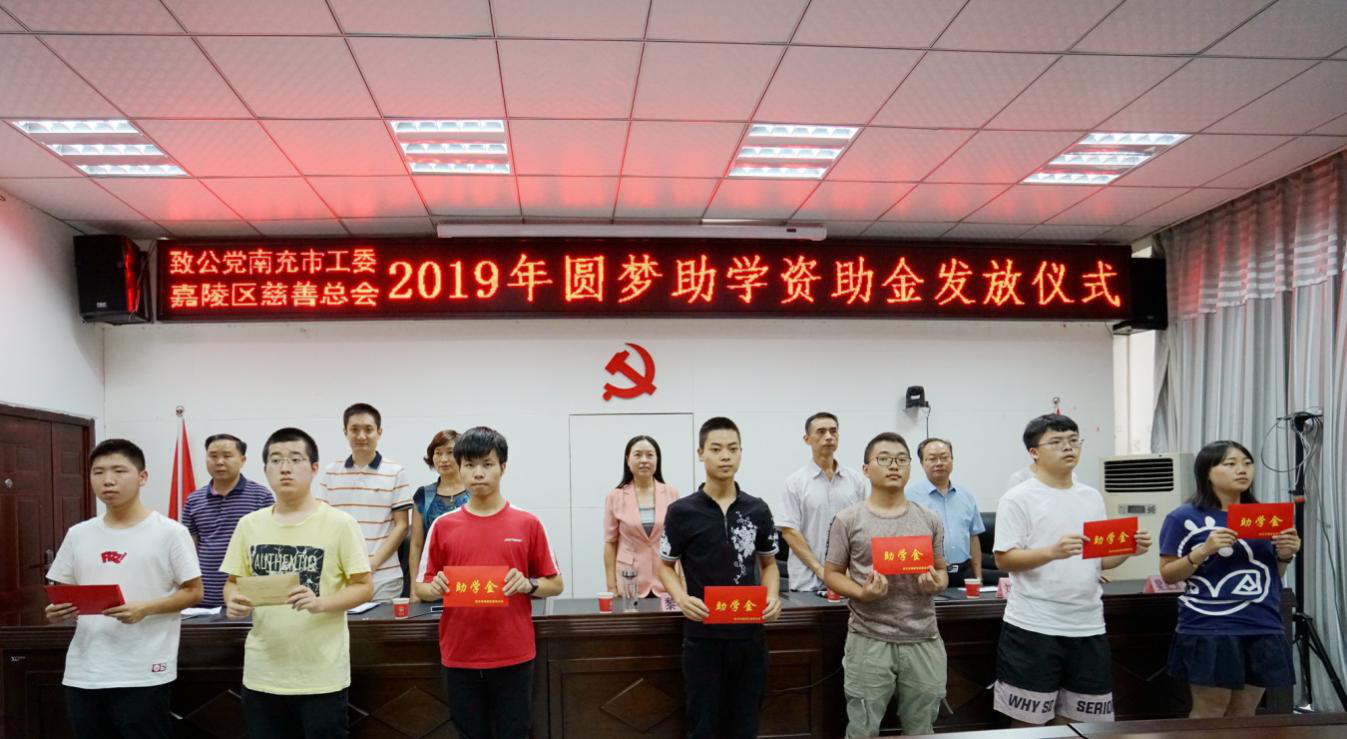 2019年8月27日,致公党南充市工委联合南充市嘉陵区民政局、嘉陵区慈善总会、“卓锦公益”等单位和组织,举行“2019年圆梦助学”和“爱助事实孤儿”资助金发放仪式,现场发放助学款16万元,帮助今年新入学的25名贫困大学新生和30名事实孤儿完成学业。致公党南充市工委主委、嘉陵区政府副区长黎萍出席资助金发放仪式并讲话。