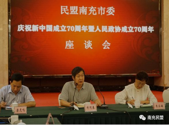 为回顾新中国成立70年来的光辉成就,重温70年来民盟与中国共产党风雨同舟、荣辱与共的初心使命,9月10日上午, 民盟南充市委庆祝新中国成立70周年座谈会在市万泰大酒店召开。市政协副主席、民盟南充市委主委朱家媛出席会议并作主题讲话。盟市委副主委李化树、郑同春、王线、谢勇恩,秘书长唐虎鸣出席会议。盟市委老领导、市委委员、不是市委委员的基层组织主委、省市人大代表、政协委员中的盟员代表、征文作者代表和机关干部近70人参加会议。