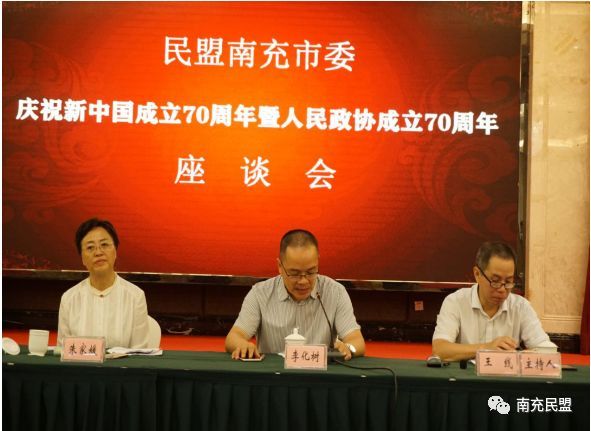 为回顾新中国成立70年来的光辉成就,重温70年来民盟与中国共产党风雨同舟、荣辱与共的初心使命,9月10日上午, 民盟南充市委庆祝新中国成立70周年座谈会在市万泰大酒店召开。市政协副主席、民盟南充市委主委朱家媛出席会议并作主题讲话。盟市委副主委李化树、郑同春、王线、谢勇恩,秘书长唐虎鸣出席会议。盟市委老领导、市委委员、不是市委委员的基层组织主委、省市人大代表、政协委员中的盟员代表、征文作者代表和机关干部近70人参加会议。