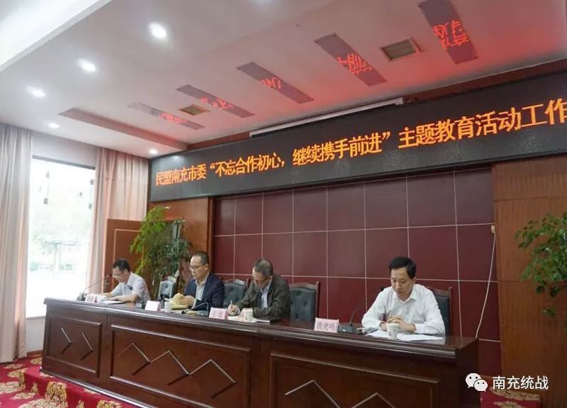 王线要求,南充民盟各级组织要准确把握“不忘合作初心,继续携手前进”主题教育的主要内容,明确目标任务,加强理论武装,巩固政治共识,强化责任担当,推进自身建设,把学习教育、履职尽责、查找不足、整改提高贯穿始终,确保主题教育取得扎实成效。一是要压实责任,尽快成立由主要领导牵头的领导小组,严格落实主体责任,亲历亲为抓好各项工作,形成整体合力;二是要精心制定方案,坚持高标准、严要求,逐条逐项明确目标任务、工作举措、领导责任和时间节点,精心安排部署;三是要注重统筹结合,要把主题教育活动纳入全局工作,与贯彻落实地方党政中心工作相结合,促进自身建设再上新台阶,履职能力得到新提升;四是要营造良好氛围,创新宣传形式和载体平台,加大对主题教育活动的宣传力度,讲述好民盟故事,传播好民盟声音,展示好民盟形象;五是要务求工作实效,要坚持贴近盟员、贴近实际,真抓实干,不断增强活动的吸引力、感染力、影响力。