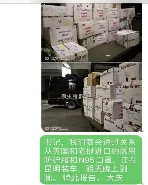 盟员邵大庆,阆中市工商联主席、总商会会长。在阆中应对公共卫生事件一级响应时,面对阆中市医疗物资紧缺的问题,邵大庆向全市会员发出主动承担社会责任、积极捐款捐物支援疫情防控战的倡议,多方协调筹谋,向市委市府请示汇报,与阆中籍优秀企业家、绵阳市南充商会常务副会长、绵阳市南充商会阆中分会会长兼党支部书记赵裕华联系,在老挝卫生部的协助下购买了一批N95口罩及医用防护服,几经辗转波折运抵回阆。