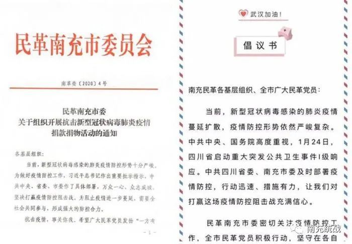 自疫情爆发以来,民革南充市委高度重视,向广大民革党员发出倡议,动员全市民革党员发扬“一方有难、八方支援”的优良传统,在做好自我防护、干好本职工作的同时,通过各种渠道为抗击疫情捐款捐物,用实际行动支援疫情防控。