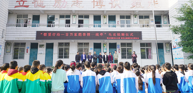 近日,致公党南充市工委联合嘉陵区妇联,在嘉陵区李渡镇土门小学,为家庭困难儿童捐赠手织毛衣。致公党南充市工委专职副主委黎冰、副主委刘志群参加捐赠仪式。