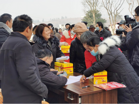1月22日上午,南充民建会员企业四川花好月圆农牧业有限公司开展“寒冬送温暖·传递正能量”活动,为蓬安县利溪镇花房子村、新园乡宽敞沟村全体村民捐赠3000余件价值12万元的牛乳制品。