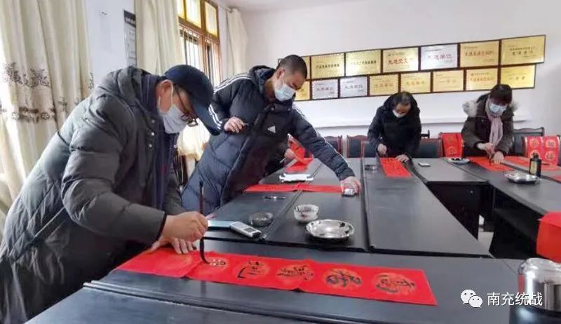 写春联、贴春联是我国春节的传统习俗,也是祥和喜庆、辞旧迎新过大年的象征,春节贴“福”字和春联,寄托了人们对幸福生活的向往。1月26日,民进阆中总支组织阆中开明画院书画家及会员中的书法爱好者先后来到阆中市北门乡、木兰乡开展“春联万家”系列活动,为广大村民送去新春祝福。
