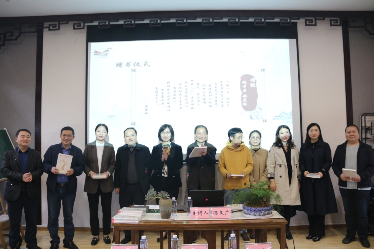 活动为统战成员代表赠书,营造浓厚的学习氛围和良好学风。随后,原中国侨联常委、四川省侨联主席冯文广以《永远跟党走》为题,从开天辟地、改天换地、翻天覆地、惊天动地四个时期,通过一幅幅油画作品,为大家呈现了新中国成立前后的历史画卷,引领观众从美术角度感受中国共产党百年光辉历程,在美术经典中重温初心、在党史学习中牢记使命,激励人们为实现“两个一百年”奋斗目标、实现中华民族伟大复兴的“中国梦”而不懈奋斗。