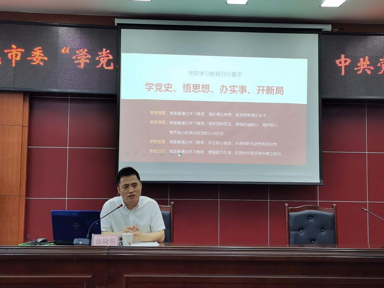 张晓明教授以丰富的史实、鲜明的观点、精辟的语言,回顾了百年来中国共产党团结带领人民走过的光辉历程,全面介绍了开展党史学习教育的重大意义、主要内容和核心要义,对为什么学党史、学什么、怎么学进行了科学阐述,为与会人员上了一堂砥砺初心的党课。
