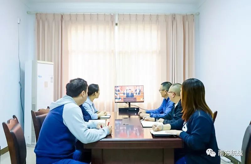民革南充市委组织机关全体干部职工在会议室集中收看大会现场直播,并以基层组织为单位组织全市民革党员通过电视、网络等多种方式收听收看学习,认真聆听习近平总书记在大会上的重要讲话。