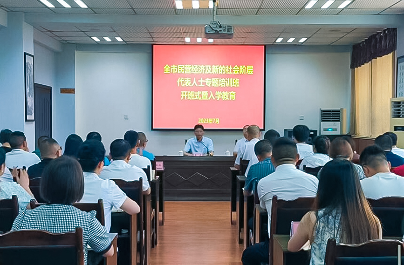 7月17日,南充市民营经济人士和新的社会阶层代表人士专题培训班在市社会主义学院开班。市委统战部副部长、市工商联党组书记黄靖出席开班典礼并作开班动员讲话,市委党校副校长唐铁军主持开班典礼。全市50名民营经济及新的社会阶层代表人士参加培训。