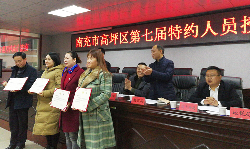 2017年12月12日,高坪区第七届“特约七员”授聘大会在区政协五楼会议室举行。区委常委、区委统战部部长赵启出席会议。“特约七员”聘请单位的主要领导、新受聘的“特约七员”、区各民主党派和工商联负责人参加会议。