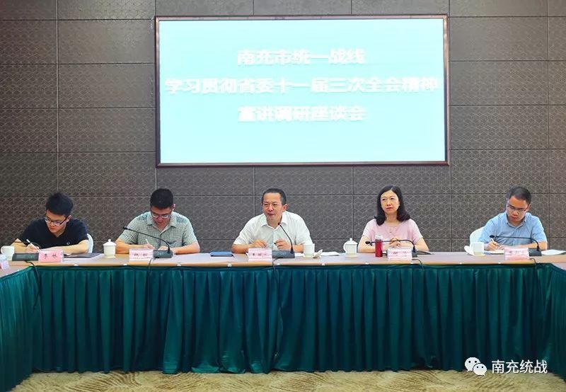 谷秀春代表市委统战部作了工作汇报,民盟市委、高坪、阆中、仪陇统战部负责人,非公经济、新的社会阶层、党外知识分子、宗教界代表人士分别就学习贯彻省委全会精神情况和下步工作安排等发言。