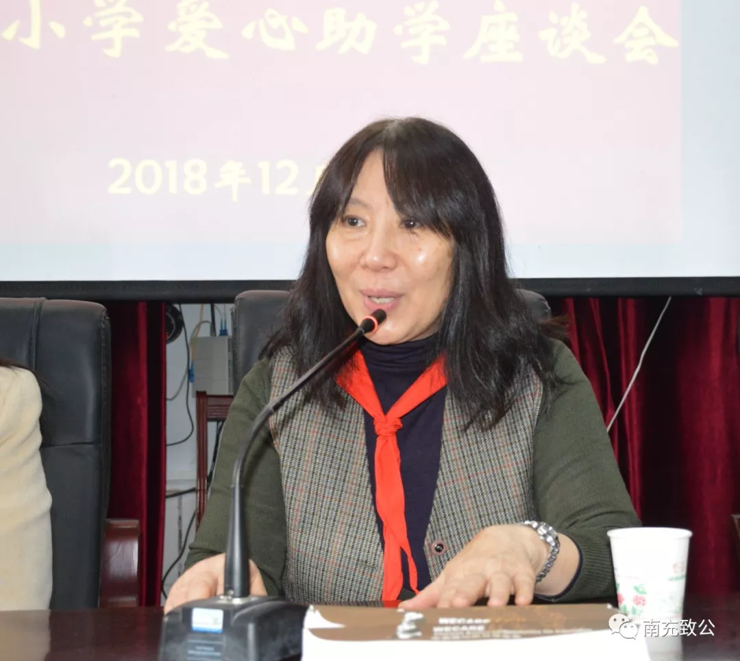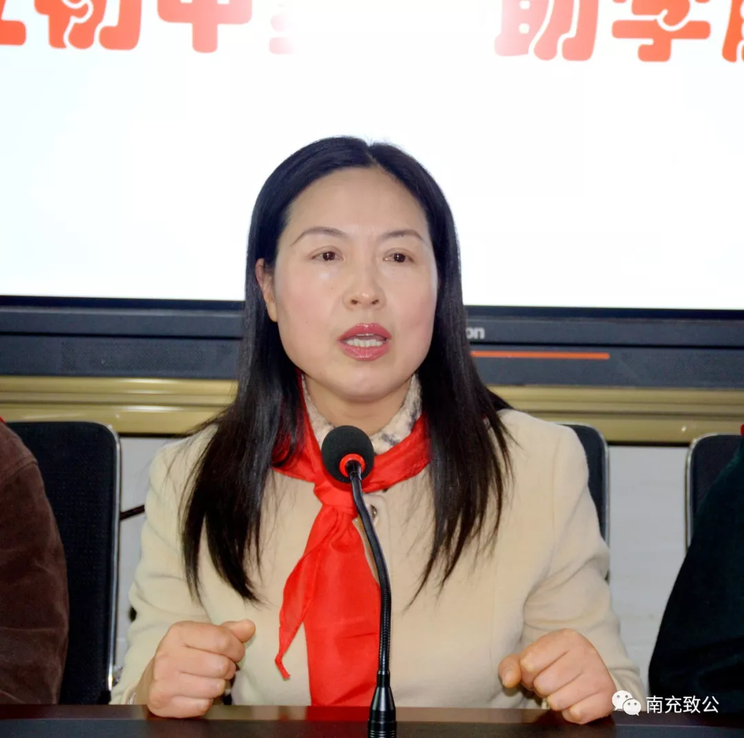 黎萍主委代表致公党南充市工委和蓬安县龙蚕小学、嘉陵区一立初中、大通小学,感谢李珊女士和中美维幼教育基金会的善心义举,同时希望受助学生要树立崇高理想,努力做一个对国家有用的人,一个知恩感恩的人,不断发奋学习,报效国家,报答社会。