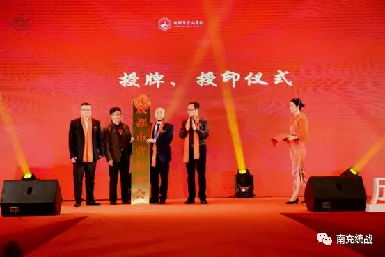 营山县委副书记朱胜国、成都市工商联副主席周光志为成都市营山商会授牌、授印
