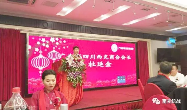 成立大会上,新当选的广东省西充商会会长杜延金、执行会长李忠勇分别致辞。(西充县委统战部) |