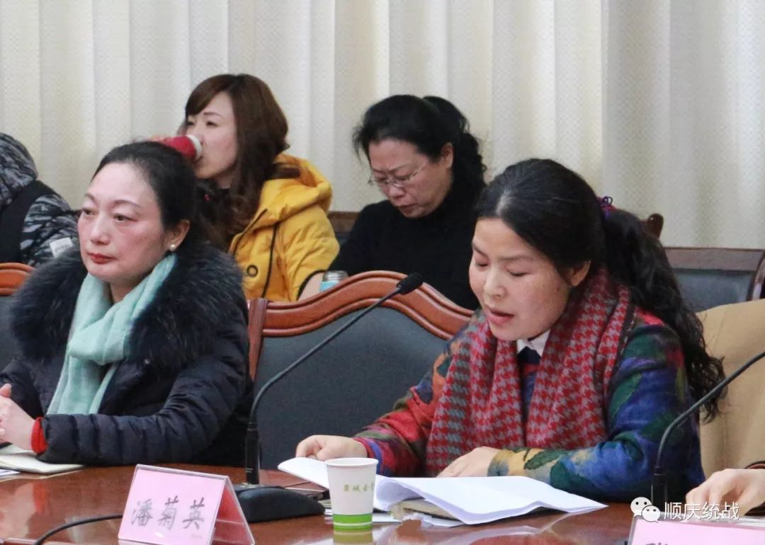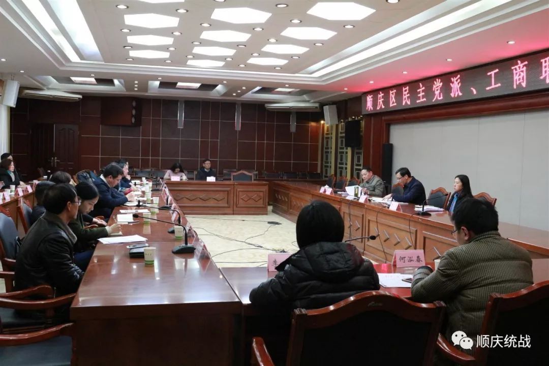 会上,民革顺庆区基层委员会主委覃瑜莉、民盟顺庆区总支主委潘菊英、民建顺庆区基层委员会副主委刘高润、民进顺庆区基层委员会主委张益萍、农工党顺庆支部主委陈玉、致公党顺庆支部主委王合理、九三学社顺庆区基层委员会主委李剑、区工商联主席朱华,分别围绕各自2018年工作开展情况、取得的成绩及2019年工作打算作了发言。
