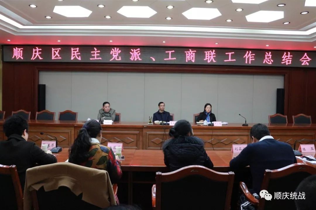 1月18日下午,顺庆区委统战部在果城会堂201会议室召开民主党派、工商联工作总结会,系统回顾2018年统战工作,安排部署2019年重点工作。区级各民主党派主委、副主委,区工商联主席、副主席,区民宗局局长共计30余人参加会议。顺庆区委常委、统战部长李建中出席会议并讲话,区委统战部常务副部长王国猛主持会议。