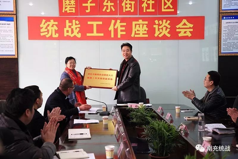 2019年1月,中共蓬安县委常委、统战部部长董林给蓬安县相如镇磨子东街社区授牌