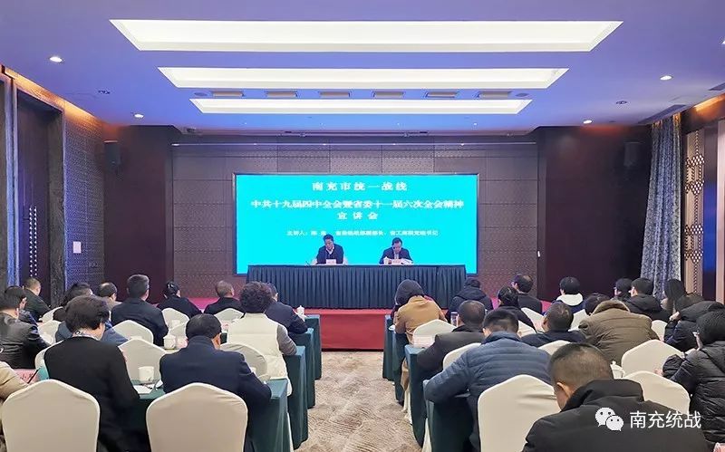 廖伦志指出,学习好、宣传好、贯彻好党的十九届四中全会精神和省委十一届六次全会精神,是全市统一战线当前和今后一个时期首要政治任务。全市统一战线要坚决维护核心、深化统战同心、聚焦大局中心,深刻领会新时代赋予统一战线的新使命;要服务大局、维护稳定、争创一流,以全会精神引领全市统战工作的新发展;要抓好传达学习、学做结合、宣传引导,迅速掀起学习贯彻全会精神的新热潮。把基层统战工作创新年、基层统战工作提升年活动与推进城乡基层治理制度创新和能力建设紧密结合起来,为南充建设成渝第二城、争创全省经济副中心作出新的更大贡献。