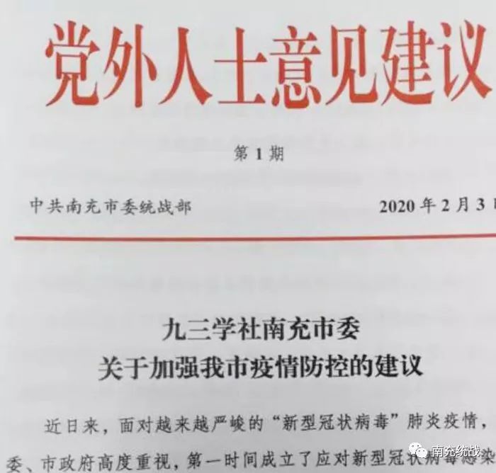 生命重于泰山,疫情就是命令。面对新型冠状病毒感染的肺炎疫情的严峻形势,作为中共的好参谋、好帮手、好同事,南充市各民主党派及广大成员深入学习贯彻习近平总书记重要指示精神,第一时间行动起来,勠力同心、众志成城,用实际行动参与疫情防控阻击战。