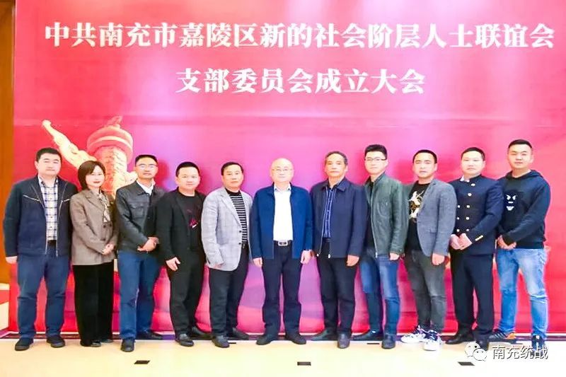 4月9日,南充市嘉陵区新的社会阶层人士联谊会召开党支部成立大会。嘉陵区委统战部常务副部长杜军、区委统战部副部长罗青松、南充市新联会党支部书记强嗣正等出席会议,区新联会党员代表参加会议。