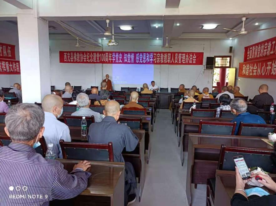 为庆祝中国共产党百年华诞,西充县民宗局近日在佛教界举办“学党史、感党恩、听党话、跟党走”专题学习会,18个佛教场所教职人员、信众代表60余人参加。