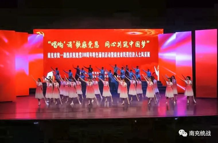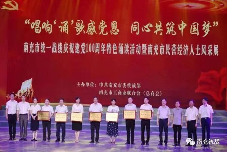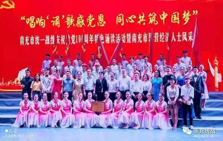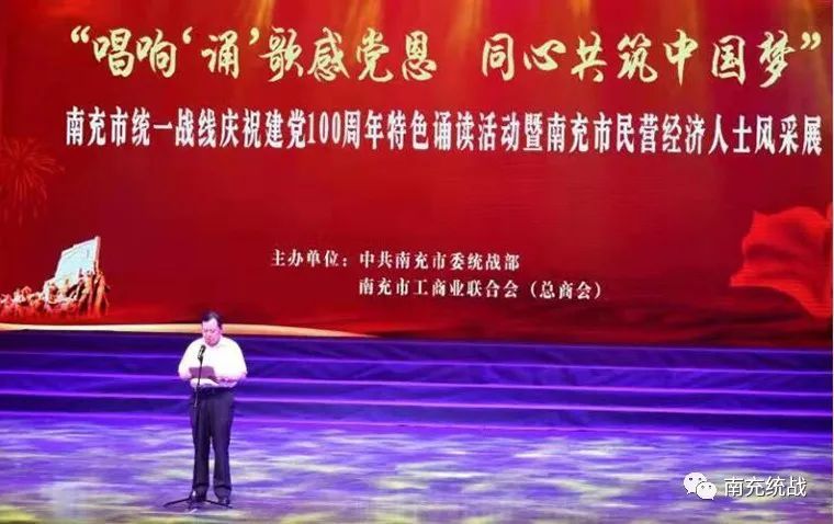 6月10日下午,南充大剧院灯火璀璨、流光溢彩、“诵”歌飞扬,由南充市委统战部、南充市工商联主办,九县(市、区)委统战部、工商联联办,四川华中建设集团、四川信诚集团、全球南商总会等协办的“唱响‘诵’歌感党恩·同心共筑中国梦”南充市统一战线庆祝建党100周年特色诵读活动暨南充市民营经济人士风采展隆重举行,用“诵”歌抒发对党的无限忠诚,用饱满的激情唱响对党的无限热爱,用实际行动展现全市统一战线的昂扬精神面貌。