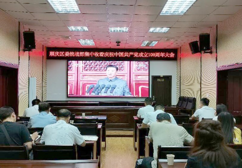 顺庆区委统战部组织全体机关党员干部及部分退休老党员在区民宗局会议室集中观看,聆听习近平总书记重要讲话。当习近平总书记代表党和人民庄严宣告:“经过全党全国各族人民持续奋斗,我们实现了第一个百年奋斗目标,在中华大地上全面建成了小康社会,历史性地解决了绝对贫困问题,正在意气风发向着全面建成社会主义现代化强国的第二个百年奋斗目标迈进。这是中华民族的伟大光荣!这是中国人民的伟大光荣!这是中国共产党的伟大光荣!”会议室响起了热烈的掌声,大家纷纷表示,要以史为鉴、开创未来,进一步强化统一战线思想政治引领,加强党对统一战线工作的集中统一领导,切实以“基层统战工作质量年”为抓手,抓实“四区一企”基层统战工作,为实现第二个百年奋斗目标、实现中华民族伟大复兴贡献统战智慧和力量!