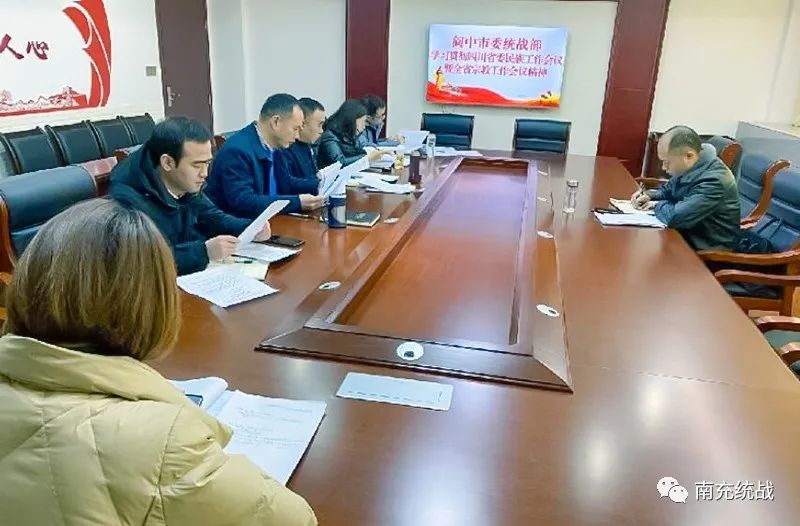 12月28日,阆中市委统战部召开部务会专题传达学习贯彻省委民族工作会议暨全省宗教工作会议精神,研究部署贯彻落实举措,安排近期重点工作任务。市委常委、统战部部长张杰主持并讲话。