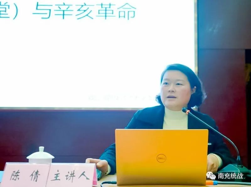 陈倩结合她在致公党党史研究中的认识和体会,用详实的历史资料和生动的语言向与会人员讲述了致公党光辉灿烂的历史,使新加入组织的致公党员对党派历史有了较为客观详尽的了解。