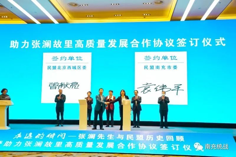 此次签约,也是民盟北京市西城区委、民盟南充市委深入开展“矢志不渝跟党走、携手奋进新时代”政治交接主题教育,不断推进自身建设,提升履职能力的生动实践。签约后,两地民盟组织将坚持“资源共享、优势互补、长期合作、共同发展”的原则,创新民盟基层组织跨区域合作机制,充分发挥各自优势,深化在盟员培训、课题调研、骨干盟员培养等方面的合作;特别是在社会服务方面,将探索创建联合社会服务品牌,打造社会服务基地,推进两地在文化、教育、科技、经济等方面的联动交流,共同助力张澜故里高质量发展。