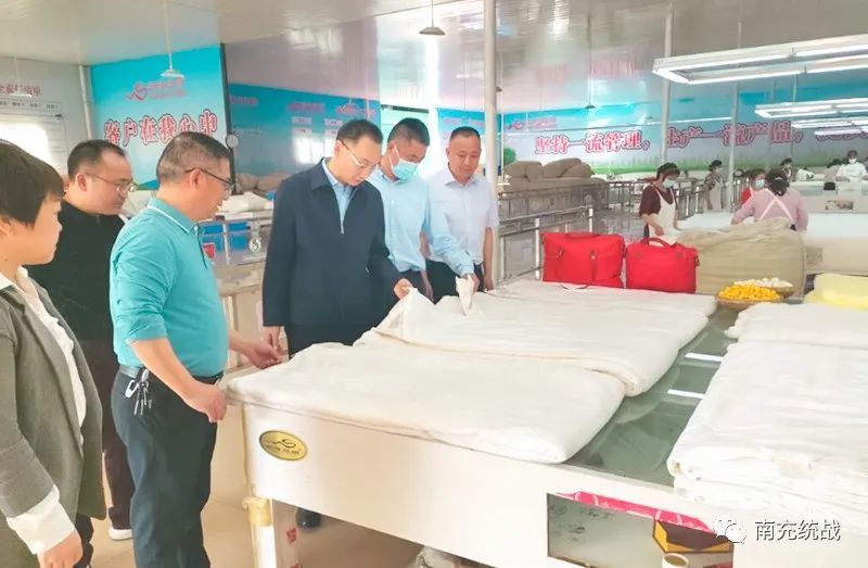 来到南充银海丝绸有限公司高档丝绸被生产基地,厂房内一片忙碌,工人相互配合、操作熟练,通过纯手工定位,拉制出蓬松均匀的蚕丝被。据公司负责人介绍,银海丝绸目前已成为四川省规模最大的蚕丝被厂家,是省丝绸科学研究院蚕丝被研发基地、国家《蚕丝绵》行业标准起草制定参与单位之一。黄靖对公司专注蚕丝被生产,并荣获“四川省名牌产品”“中国绸都十大品牌”表示肯定。他指出,丝绸是南充的一张响亮名片,受到广泛关注,希望银海丝绸大力推动品牌战略,加大营销创新,全力拓展销售渠道,深耕细分领域,做大做强。