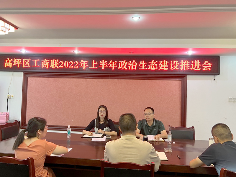 近日,高坪区工商联党组召开了2022年上半年政治生态建设推进会。会议由区委统战部副部长、区工商联党组书记朱红梅主持,区纪委监委驻区委组织部纪检监察组组长黄恩铭到会指导并讲话。