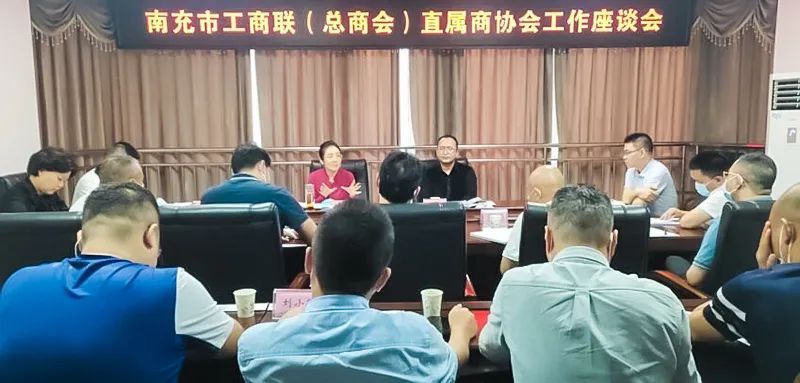 座谈会上,丁健康副主席通报了市工商联直属商(协)会建设发展现状,并从组织建设、法律服务两个大的方面对政治建设、党的建设、换届、年检、“网上工商联”会员数据库填报、“四好”商会创建、“万所联万会”机制落实、“枫桥式商会”创建等8项具体工作做了安排部署。各商(协)会简要汇报了工作开展情况,结合各自行业特点和工作实际,提出了首届“南充市企业家日”活动期间的工作计划和活动打算。