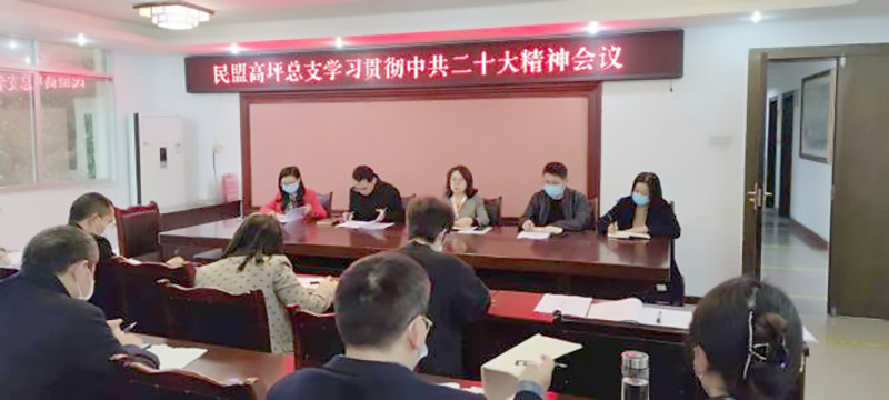 11月8日,民盟高坪总支在区政协二楼会议室召开中共二十大精神专题学习会。民盟高坪总支主委、区政协副主席滕晓燕主持会议,全体总支委员、各支部班子成员和部分骨干盟员参加了会议。