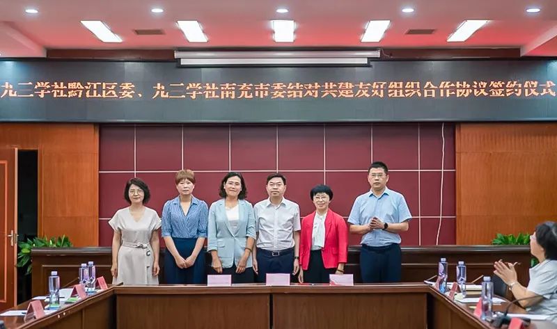 6月13日,九三学社重庆市黔江区委与九三学社四川省南充市委友好组织合作协议签约仪式在南充市举行。中共南充市委常委、市政府党组成员史燚,黔江区人大常委会副主任、九三学社黔江区委主委郭晓燕,南充市政协副主席、九三学社南充市委主委王翠花,中共南充市委统战部常务副部长何建新出席签约仪式。九三学社南充市委副主委朱华主持签约仪式。