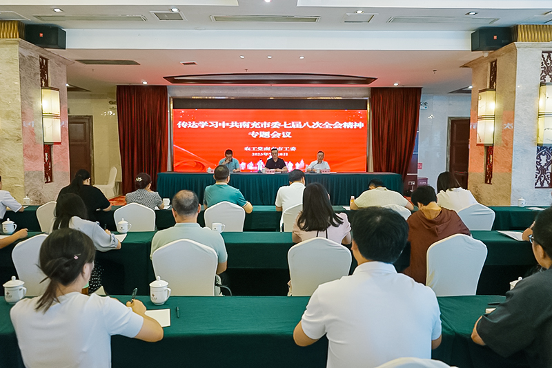 7月28日上午,农工党南充市工委召开专题会议,传达学习中共南充市委七届八次全会精神。农工党市工委委员,各支部负责人,市(区)人大代表、政协委员共35人参加会议。中共南充市委统战部副部长彭朝勇同志到会指导并讲话。