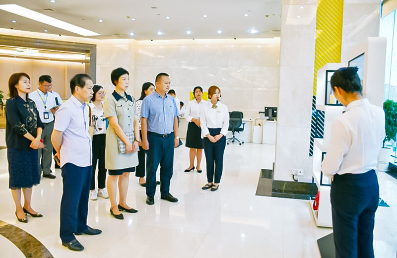 在四川天府银行总行营业部,调研组一行实地参观了客户体验区、24小时自助银行服务区、金融知识宣传区等,详细了解了四川天府银行在银行网点服务、运营管理等方面的情况。