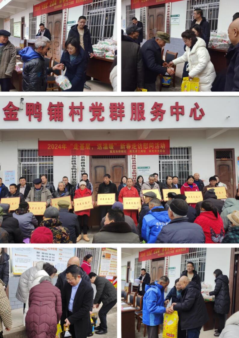 1月29日上午,市工商联联合市供销社,带领市光彩事业促进会及市内爱心企业家代表一行,深入定点帮扶村——仪陇县金鸭铺村开展“走基层 送温暖”春节慰问活动。市工商联主席、市总商会会长杨波,市工商联党组成员、副主席李国良,市工商联四级调研员、办公室主任苟灵芝,以及南充东方医院总经理杜平、四川川北凉粉饮食文化有限公司总经理李华、四川前村文化传媒集团公司董事长彭小平等爱心企业家代表参加慰问活动。