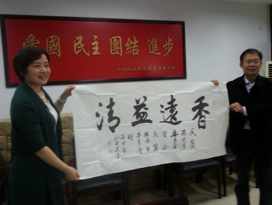 近日,民盟揭阳市委驻会副主委王伟华带领民盟揭阳市委委员一行来我市开展考察交流活动,双方就民盟自身建设和盟务工作进行了深入友好交流。同时,王伟华副主委代表民盟揭阳市委向民盟南充市委赠送了题为“香远溢清”的书法作品,并前往张澜纪念馆和西充张澜故居盟员教育基地参观考察