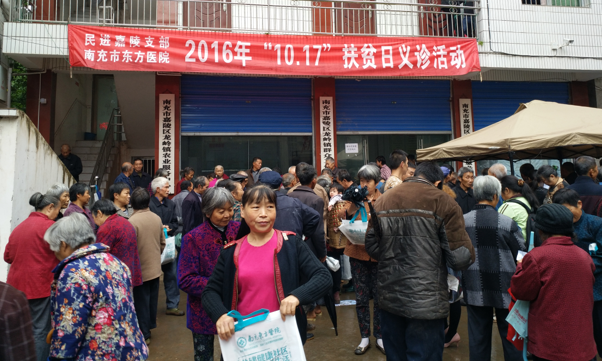 在第三个全国扶贫日到来之际,民进嘉陵支部携手南充东方医院到嘉陵区龙岭镇开展了为期一天的扶贫义诊活动,活动开展得到龙岭镇党委政府的大力支持,现场为240余名困难群众做了健康体检,取得预期效果。