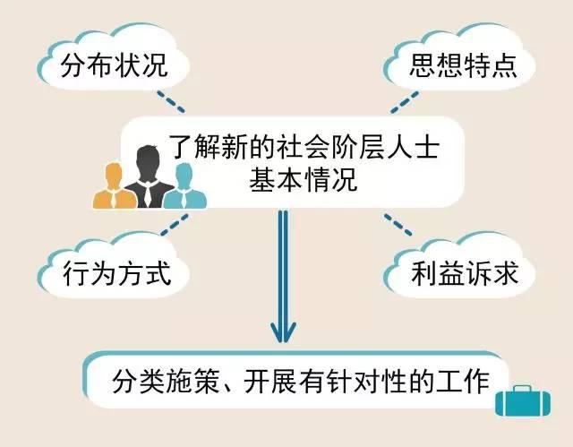 打造平台,加强引导。调查摸底的同时,加强思想政治工作,重点围绕新的社会阶层人士参政议政、发挥作用搭建活动平台,把更多新的社会阶层人士纳入统战范围,引导他们爱国、敬业、诚信、守法、贡献,致富思源、富而思进,自觉接受党的领导,自觉履行义利兼顾、扶贫济困的社会责任,做合格的中国特色社会主义事业的建设者。