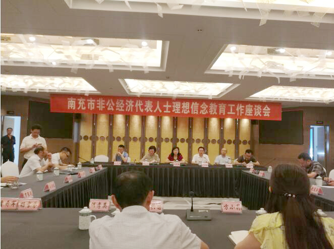 7月27日上午,市委统战部在南充大酒店组织召开全市非公经济人士理想信念教育活动座谈会。市委统战部常务副部长谷秀春出席会议并讲话。市工商联(总商会)班子成员及全市非公经济代表人士共50余人参会。座谈会由市委统战部副部长、市工商联党组书记冯泽林主持。