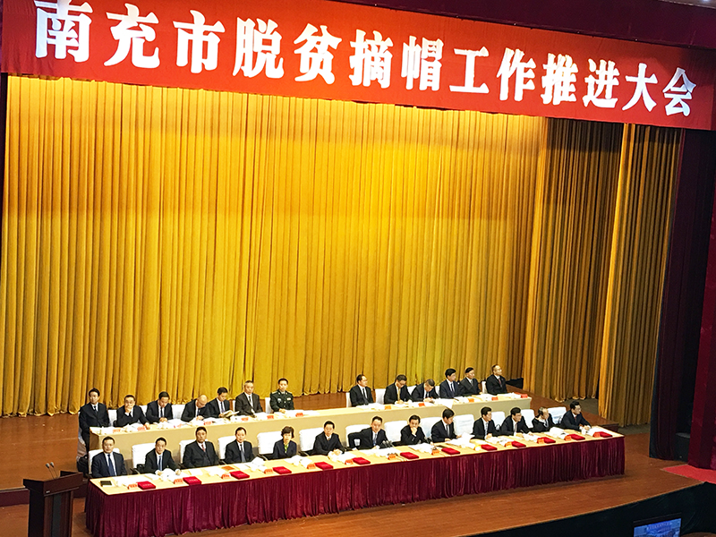 在全市上下深入学习宣传贯彻党的十九大精神的重要时刻,南充市脱贫摘帽工作推进大会11月16日上午在南充大剧院召开。市委书记宋朝华出席会议并作重要讲话,强调党的十九大对坚决打赢脱贫攻坚战作出了战略部署,省委对做好脱贫攻坚工作提出了最新要求,必须坚定贯彻、全面落实。全市上下务必锁定目标、保持定力,坚定脱贫摘帽方向方位;务必冲刺当前、决战收官,确保脱贫摘帽再战再胜。市委副书记、市长吴群刚主持大会。市人大常委会主任袁险峰,市委副书记古正举出席大会。