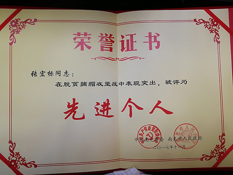 会上,民建南充市委副主委、四川省华中建设集团有限公司、南充花好农业有限公司董事长张宏标,获得南充市脱贫摘帽攻坚战先进个人荣誉称号。
